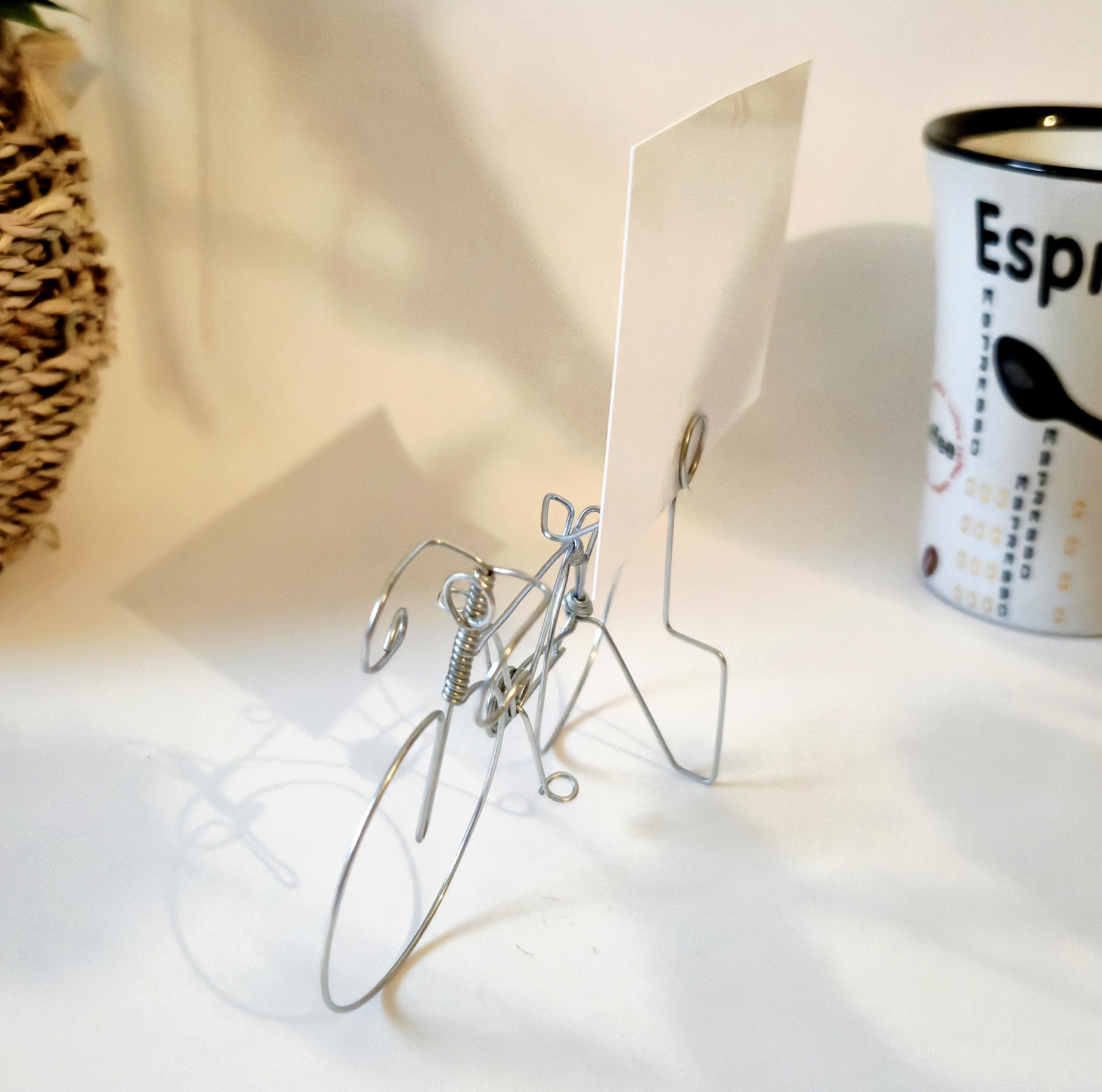 This pretty little bicycle is entirely handmade from wire and aluminum. To create it, I use a bending technique and various pliers.
